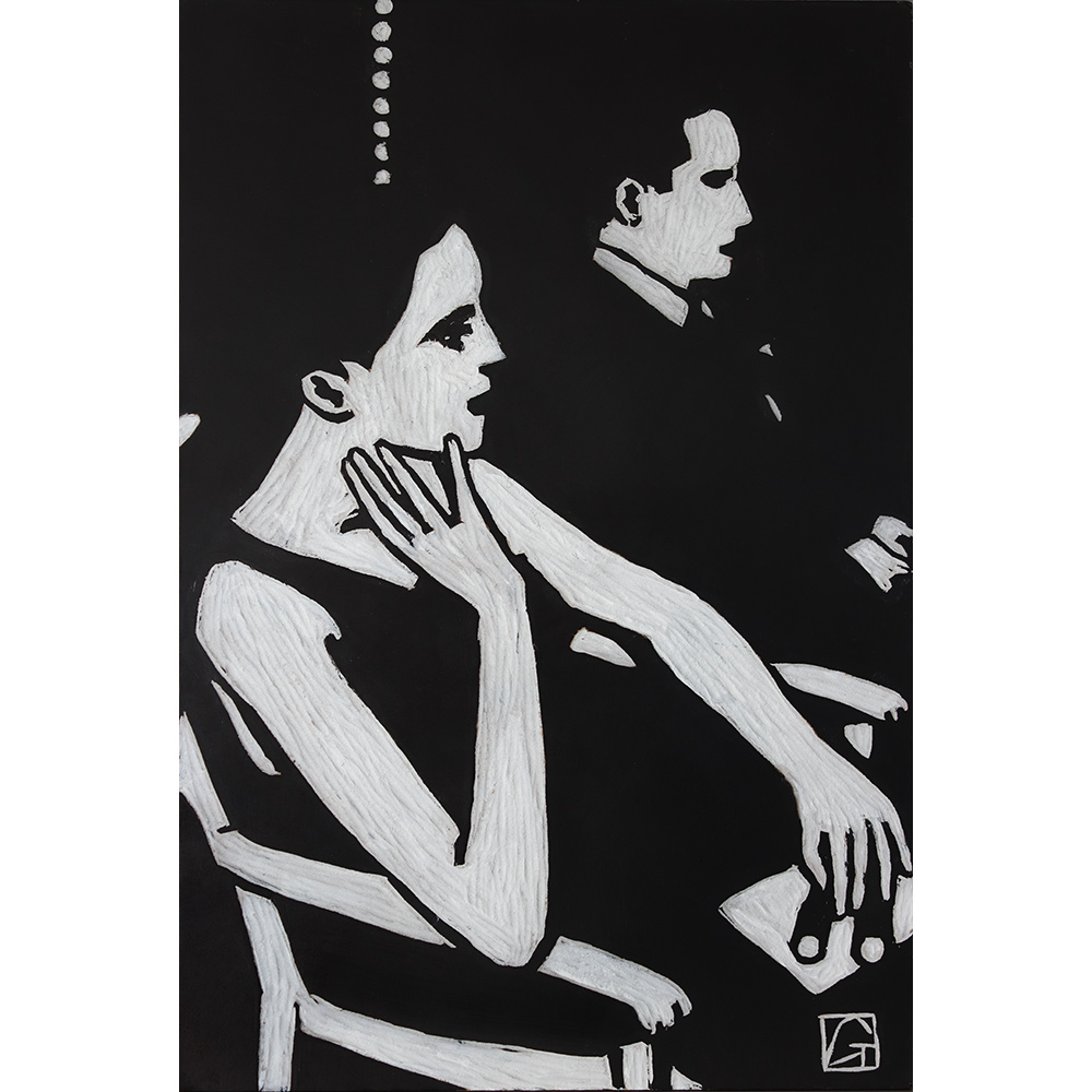 Panneau de MDF sculpté et peint – 2025 61x40cm Signé du monogramme et au verso.